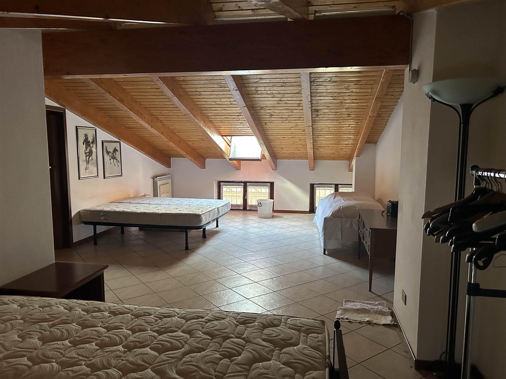 Tramite una scala a chiocciola posta nel soggiorno, si accede al piano sottotetto, trasformato in grande mansarda (87 mq.) con finiture al civile, adibita ad ulteriore zona notte con piccolo bagno finestrato.