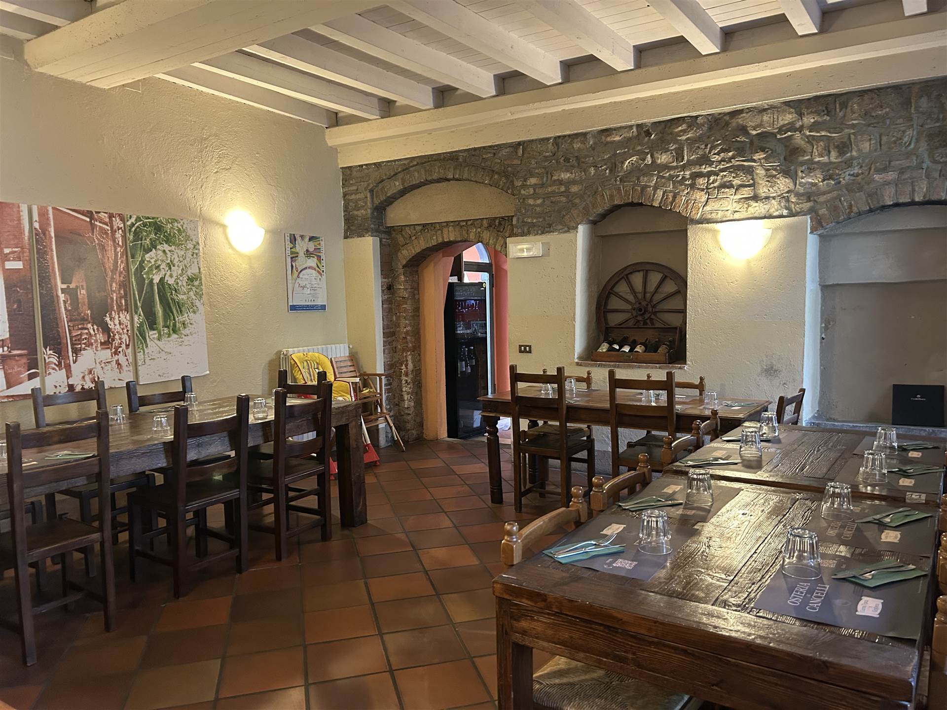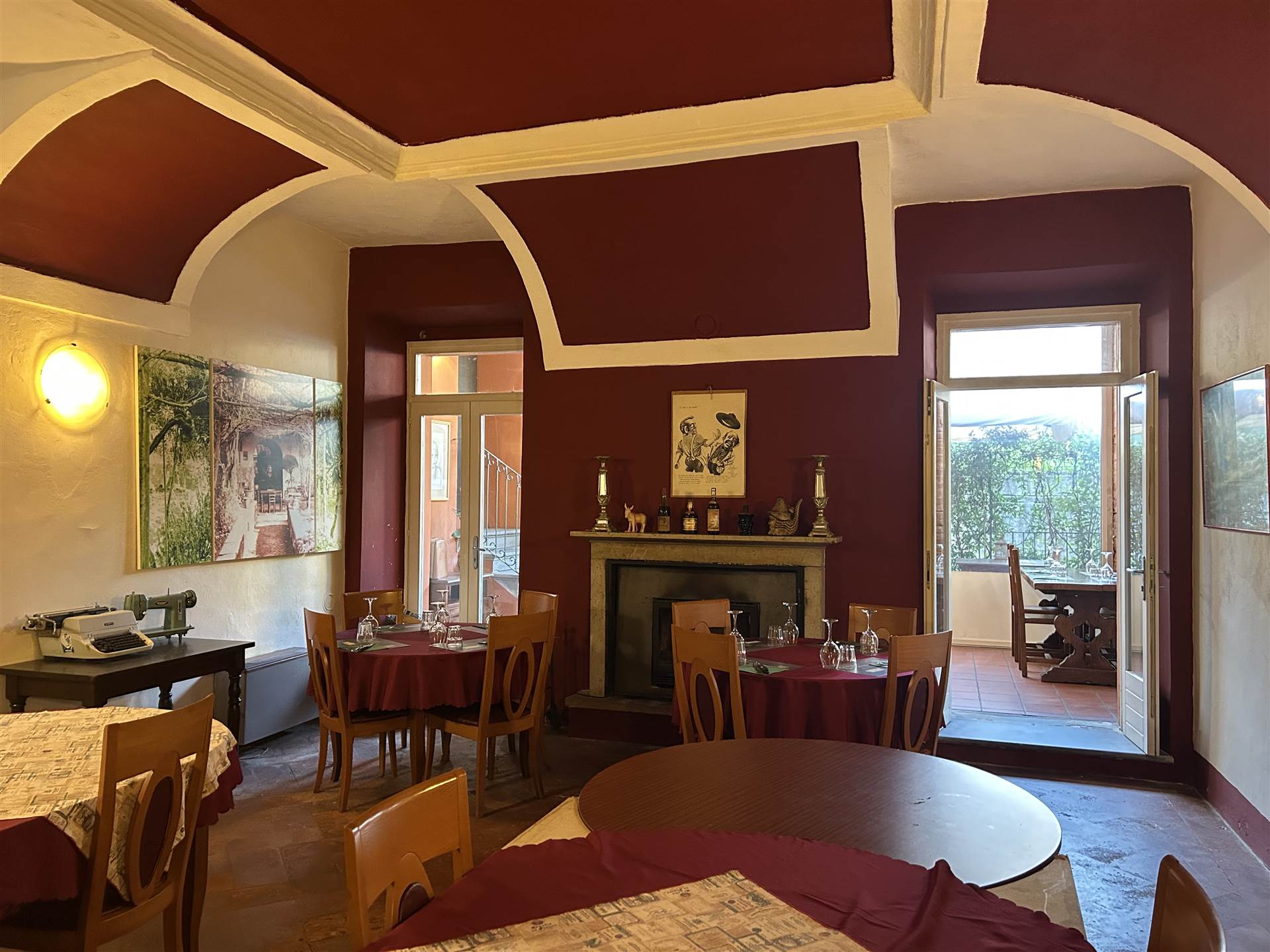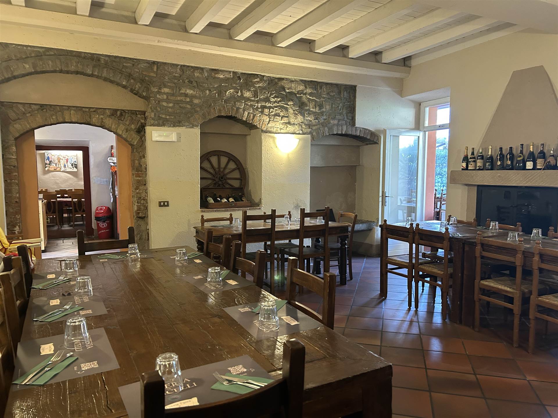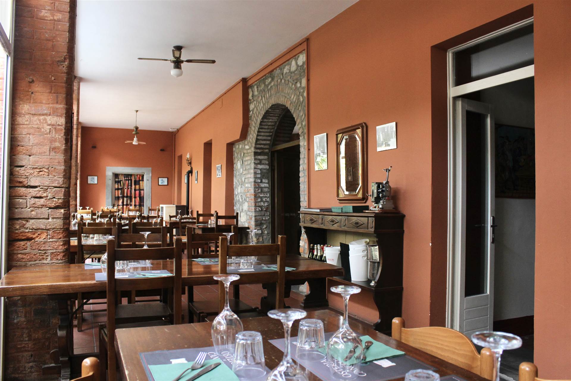 Osteria molto caratteristica con ampie sale con involti e camini, cortile interno e portico, dotata di grande cucina attrezzata, bancone bar, dispensa, spogliatoio, bagni.