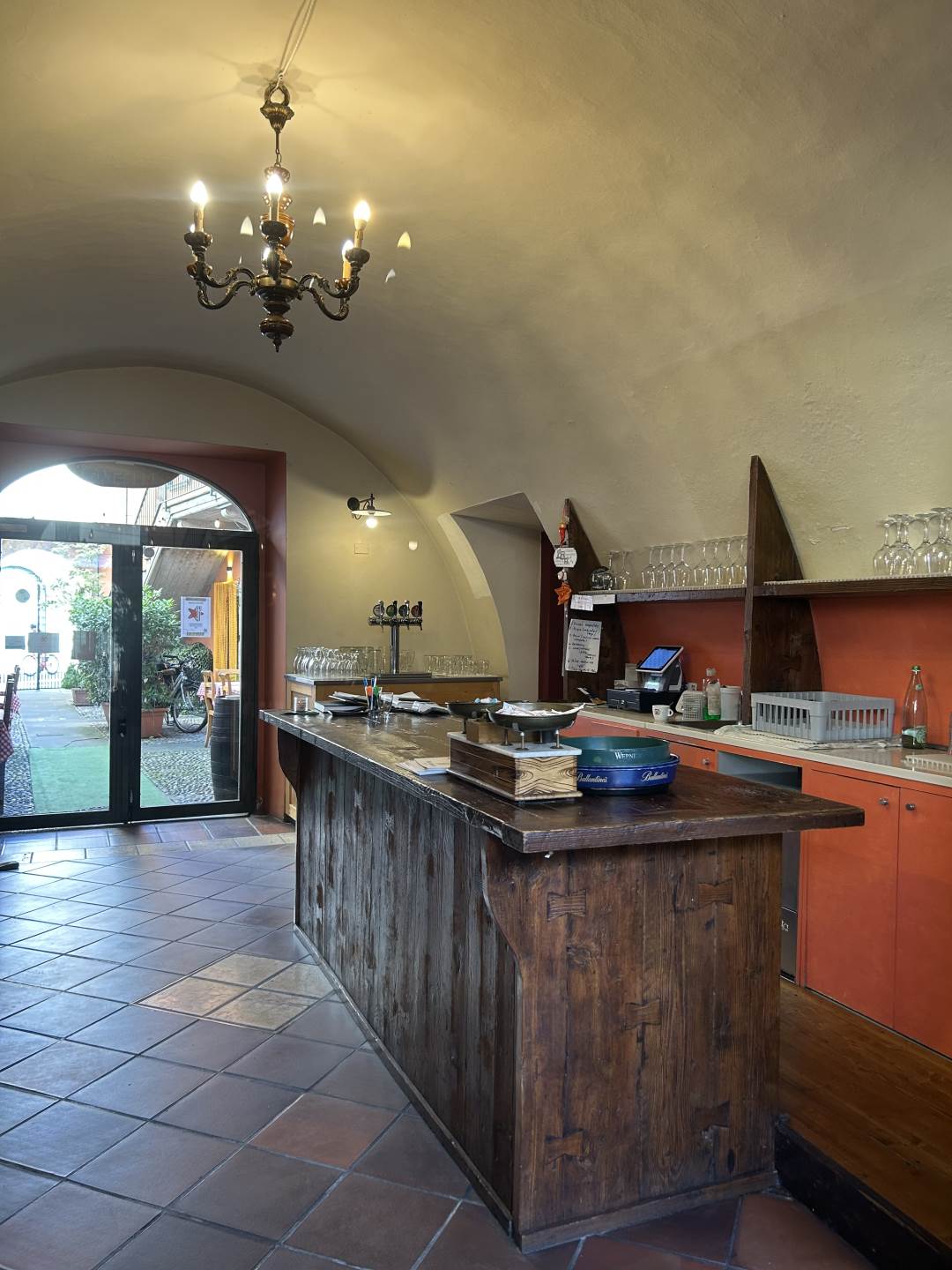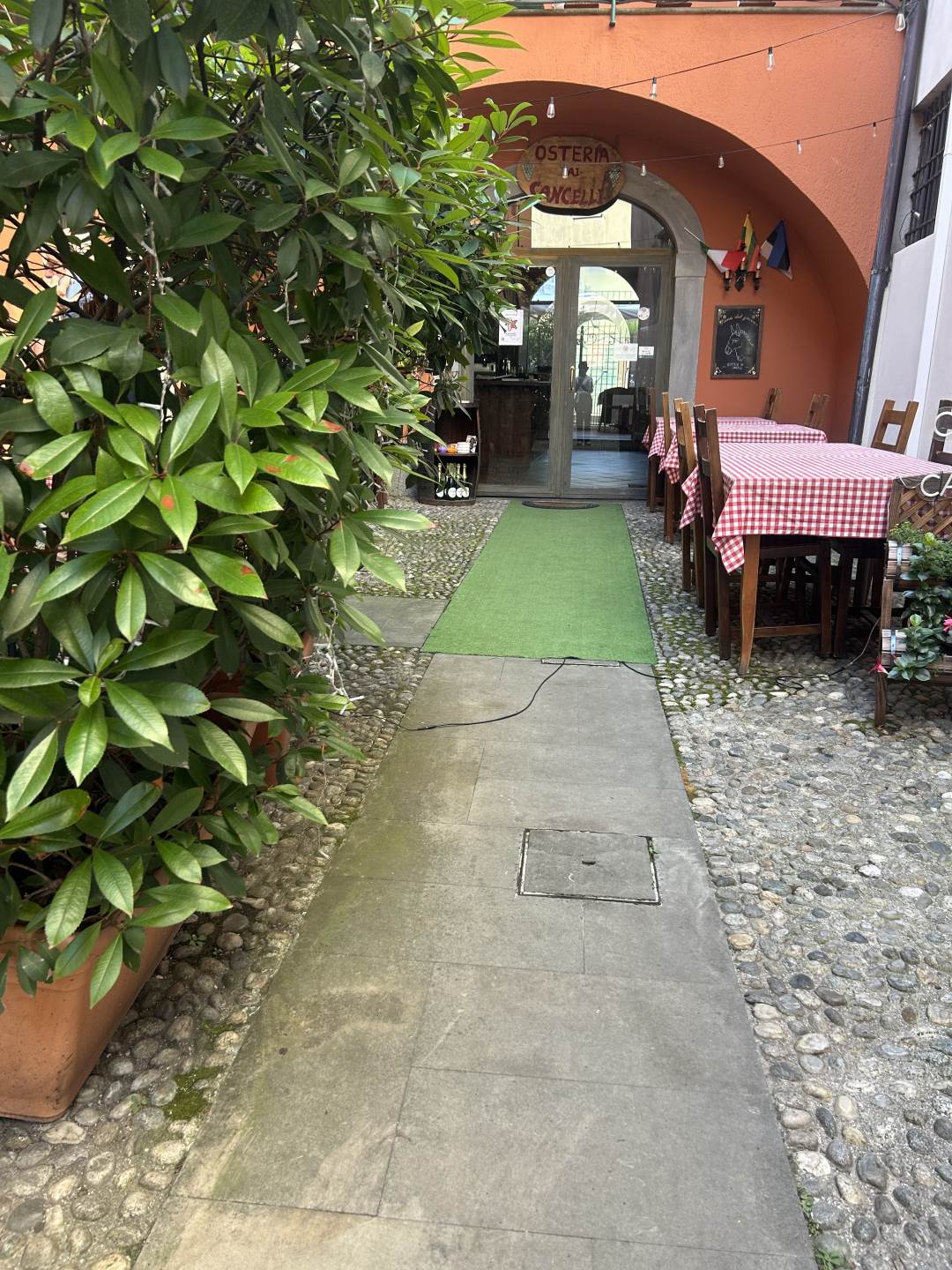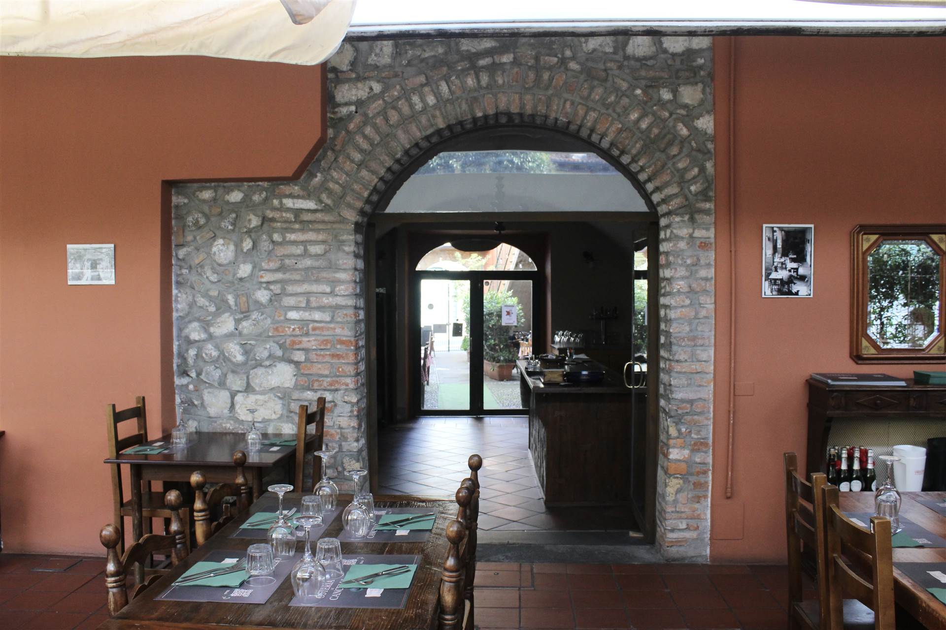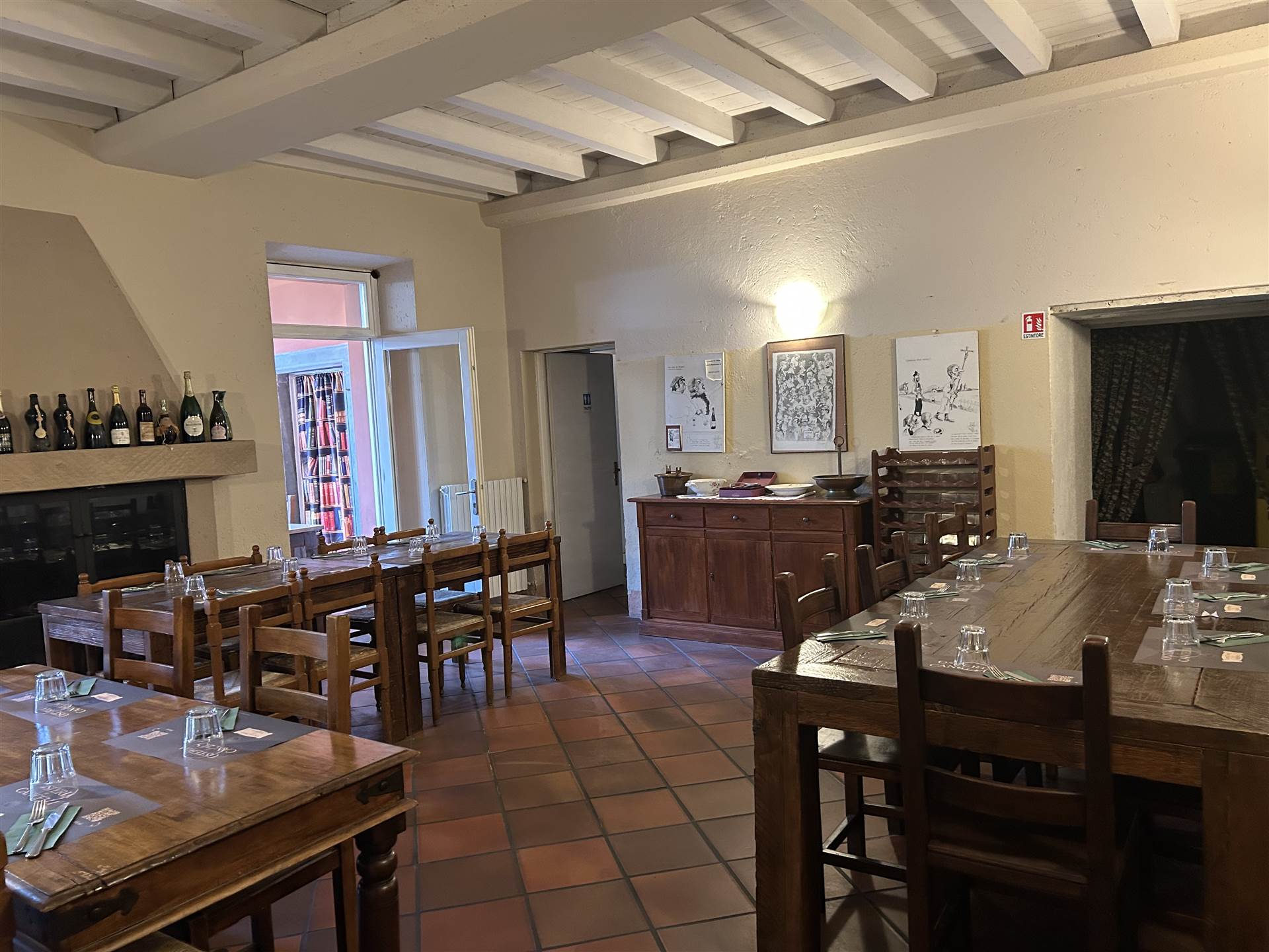 Osteria molto caratteristica con ampie sale con involti e camini, cortile interno e portico, dotata di grande cucina attrezzata, bancone bar, dispensa, spogliatoio, bagni.