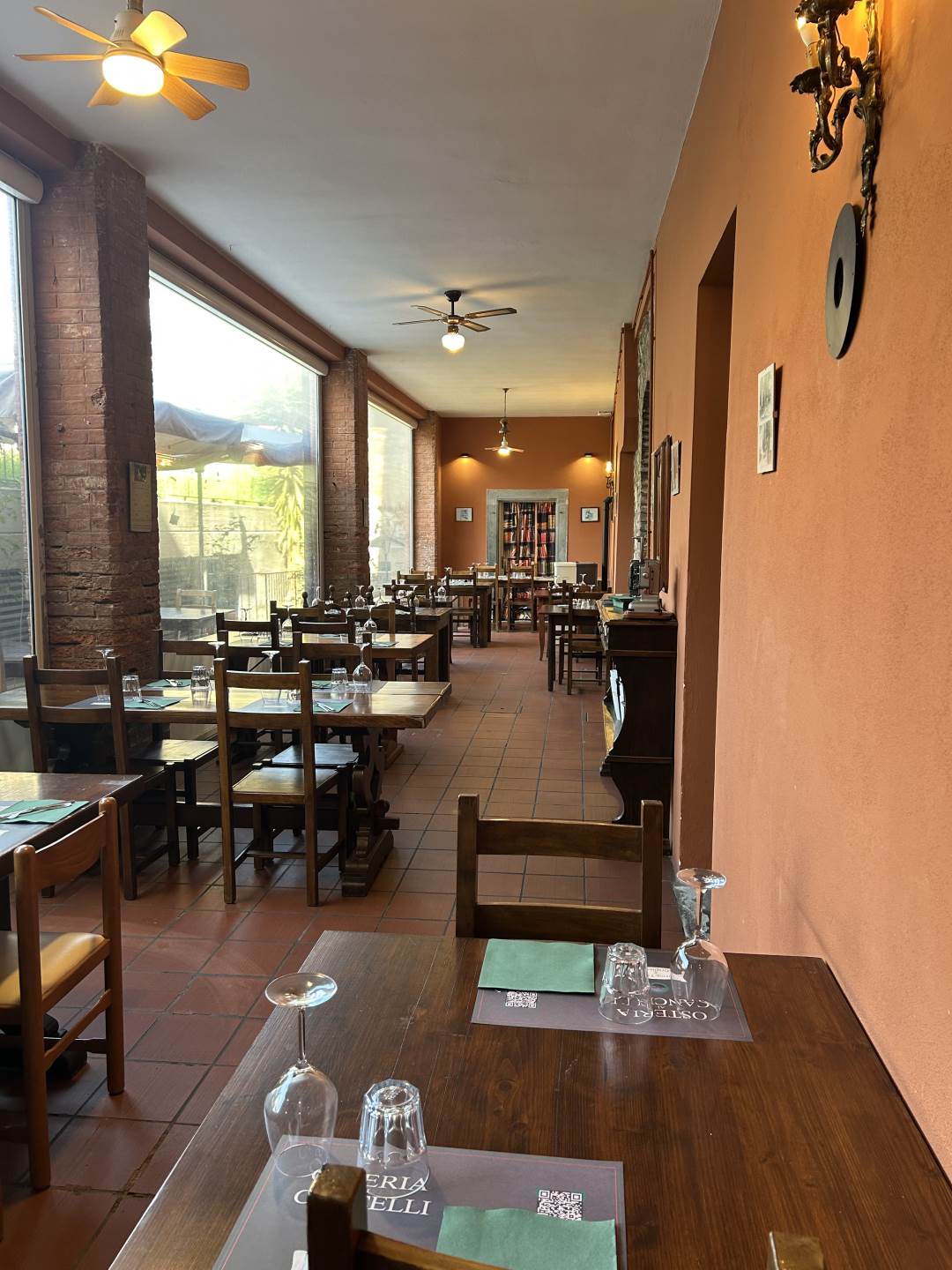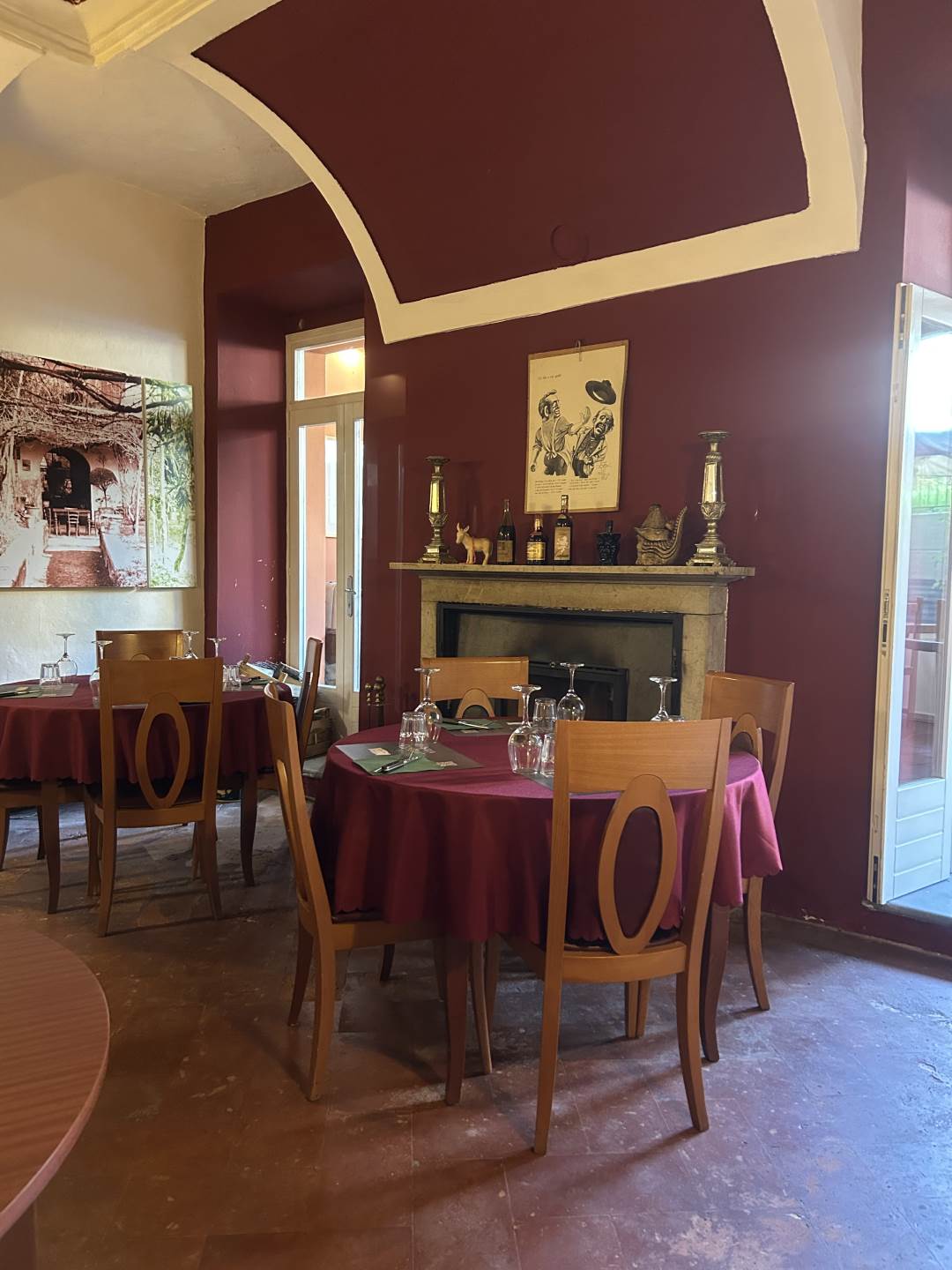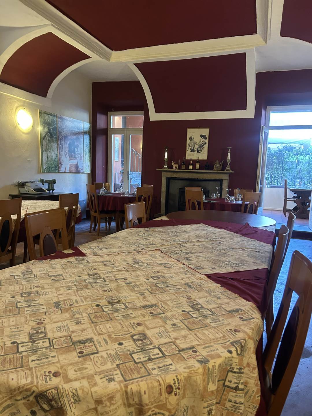 130 coperti da suddividere in base alle esigenze nelle sale, nel portico esterno e nel cortile interno.