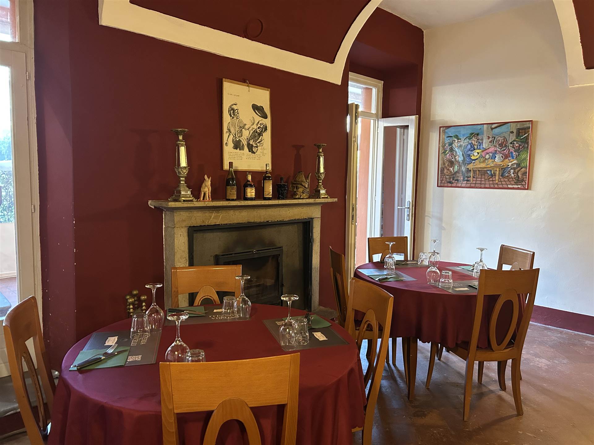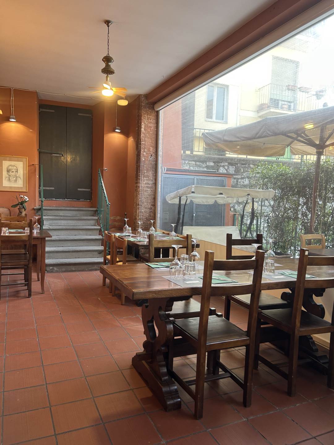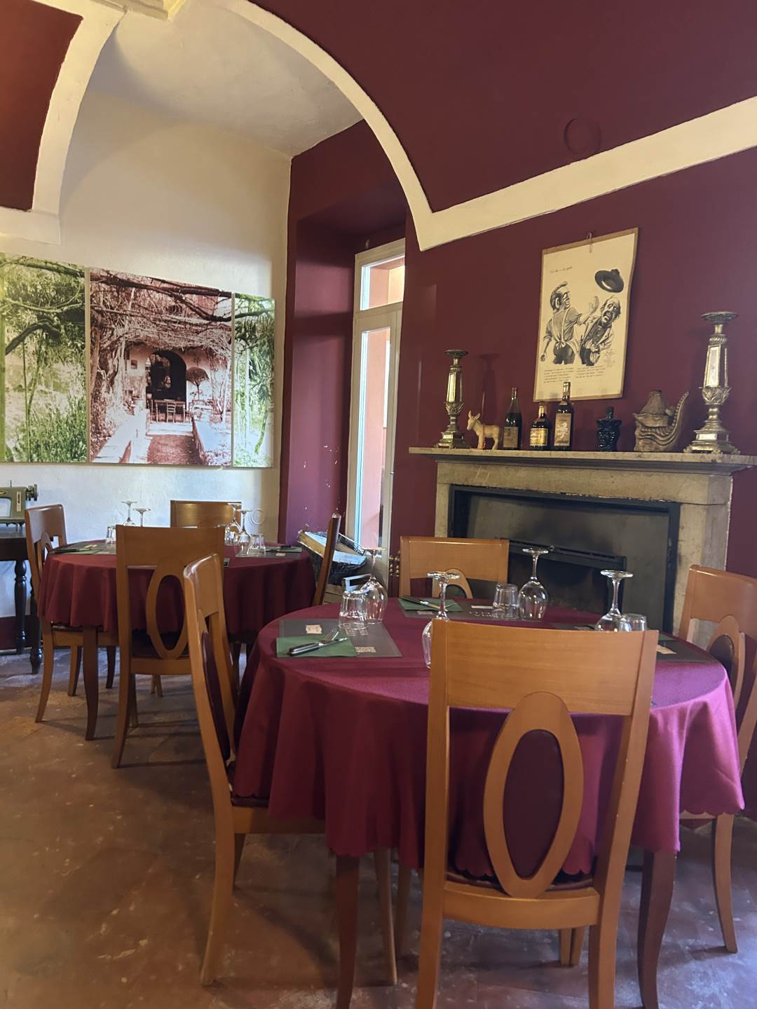 130 coperti da suddividere in base alle esigenze nelle sale, nel portico esterno e nel cortile interno.
